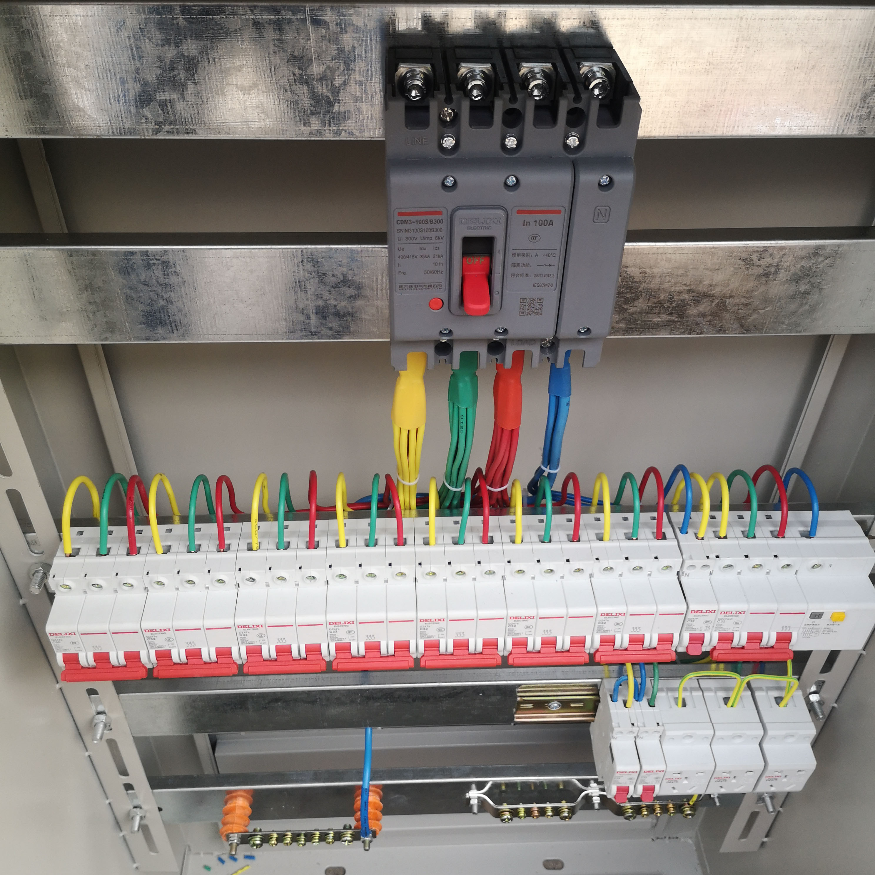 1、变压器低压380V(400V)出线进入低压配电柜,经过配电柜对电能进行了一次分配(分出多路),这是1级电源分配箱;